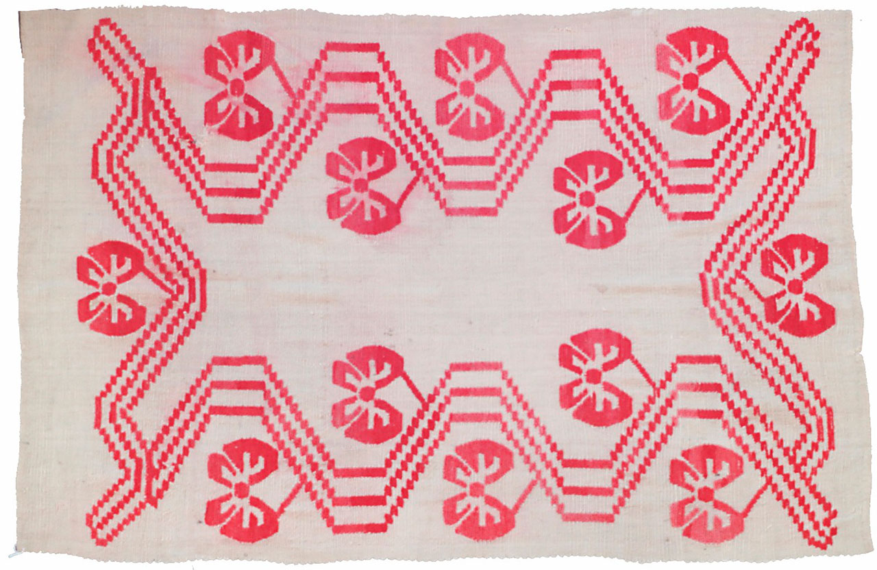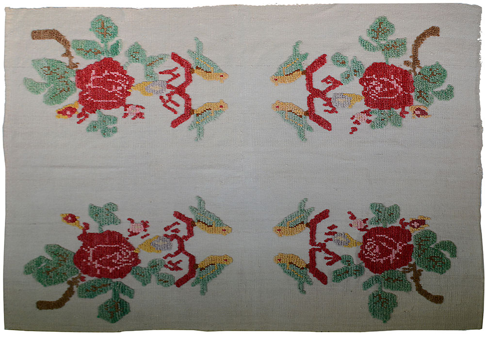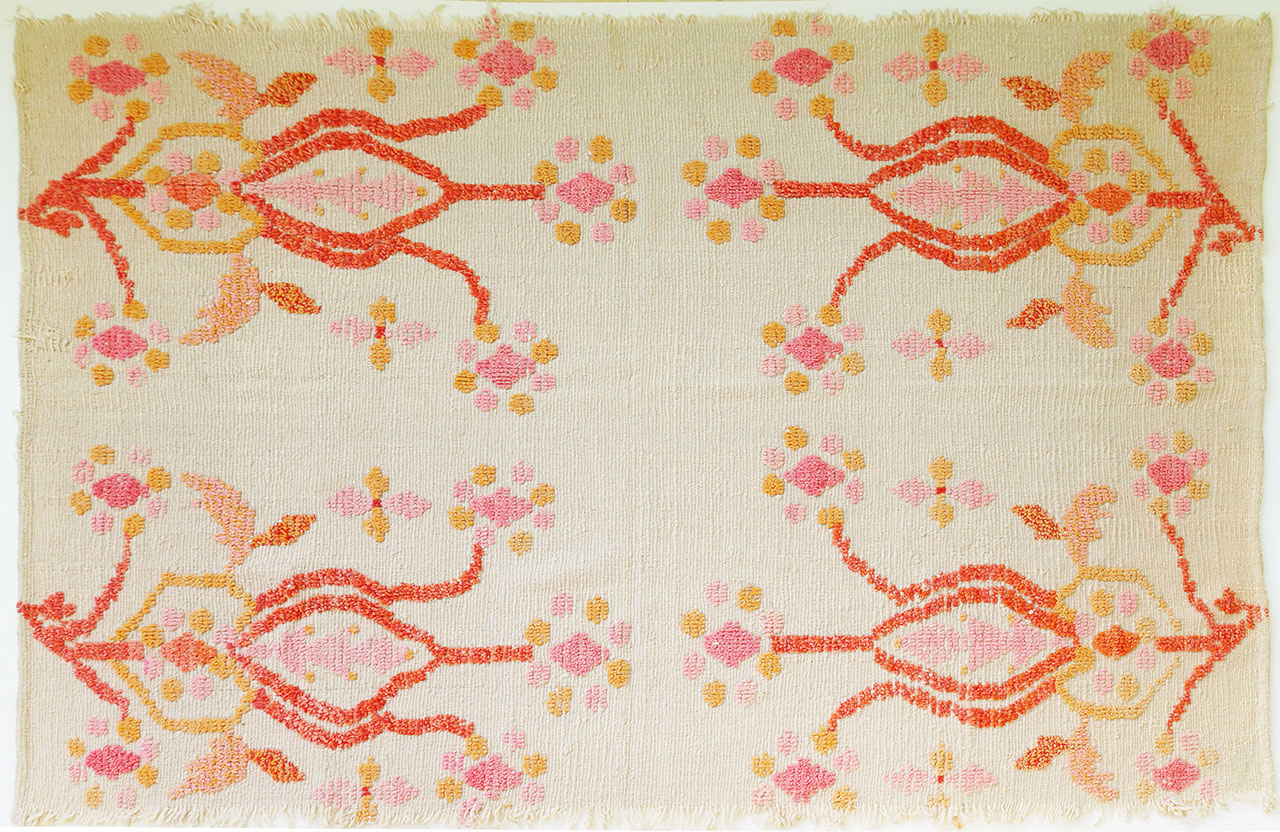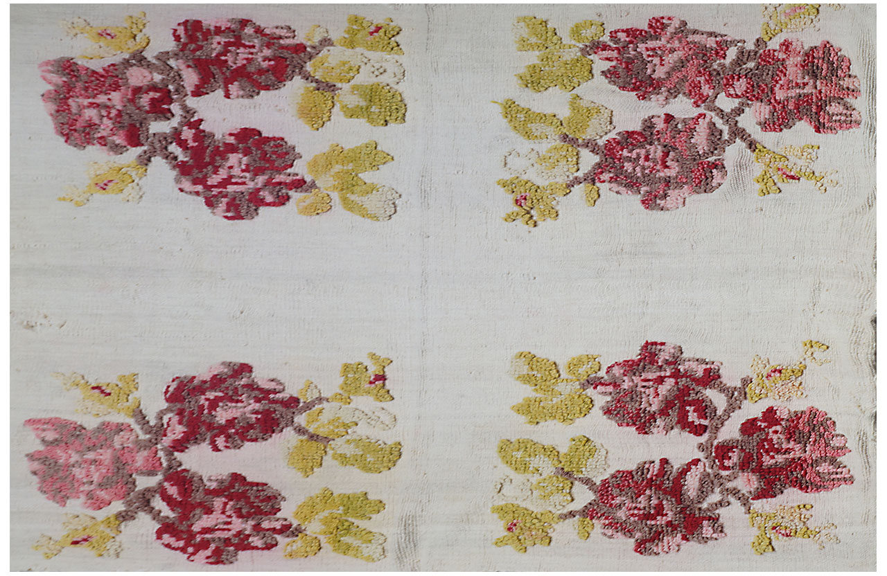 Técnica:Urdimbre y trama, una hebra / Pelo doble / Diseño floral (Ichona) / Cosida en la terminación