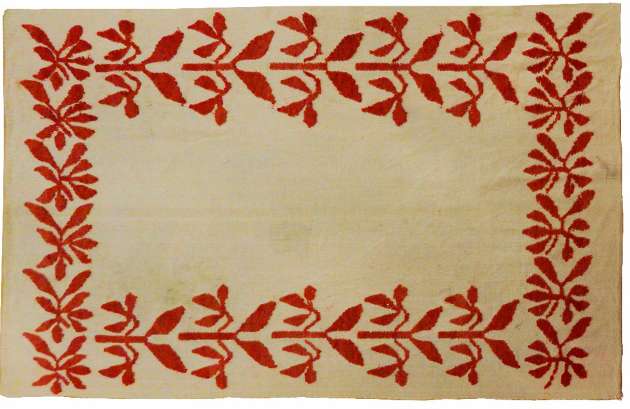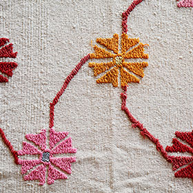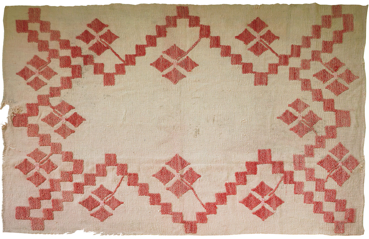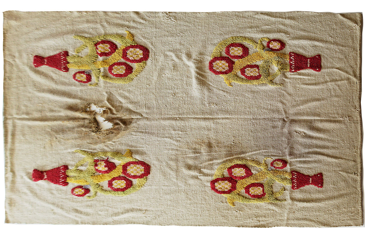 Técnica:Urdimbre y trama, una hebra / Pelo doble / Diseño floral (Ichona) / Cosida en la terminación