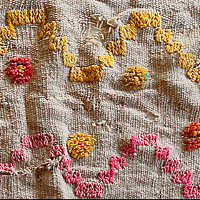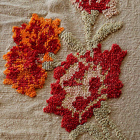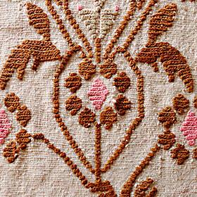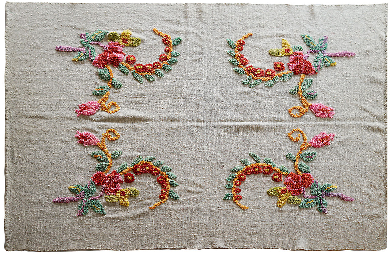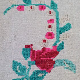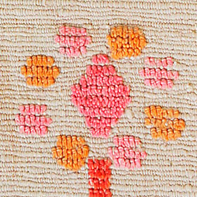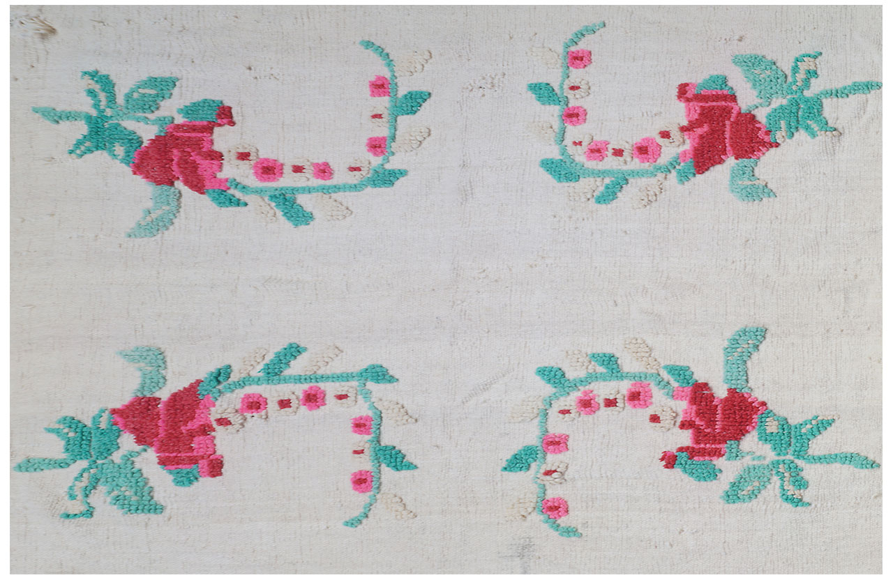 Técnica: Urdimbre y trama, una hebra /Pelo doble / Diseño floral / Cosida en la terminación