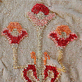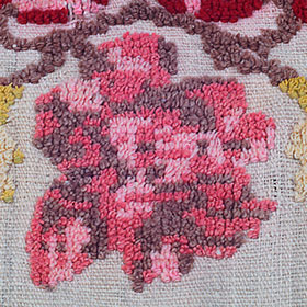 Técnica:Urdimbre y trama, una hebra / Pelo doble / Diseño floral (Claveles) / Cosida en la terminación