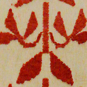 Técnica: Urdimbre y trama, una hebra /Brocado (hilado de tres hebras) / Diseño floral escalonado / Cosida en la terminación