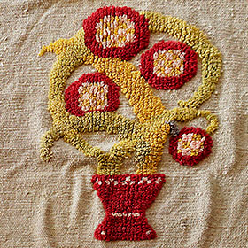 Técnica:Urdimbre y trama, una hebra / Pelo doble / Diseño Floral / Dipe