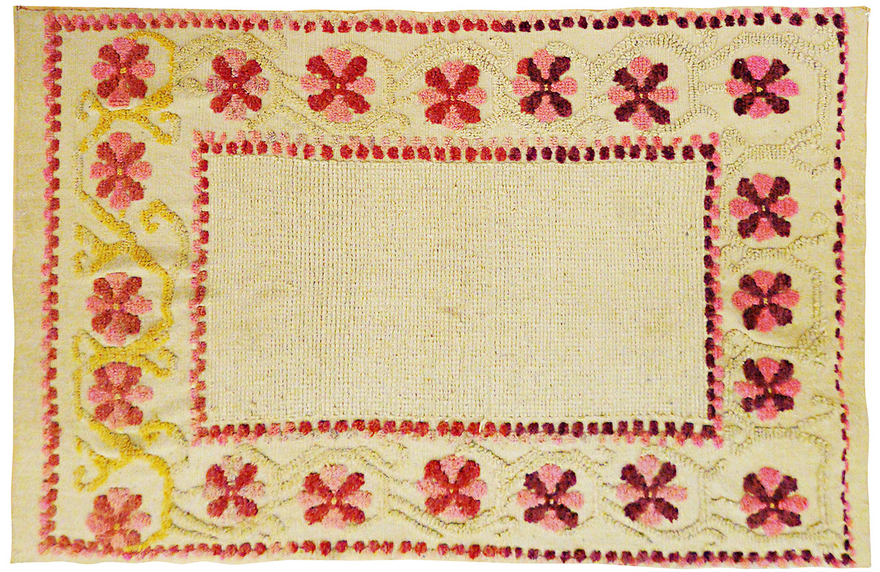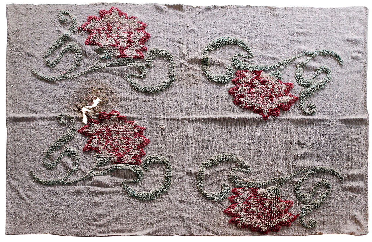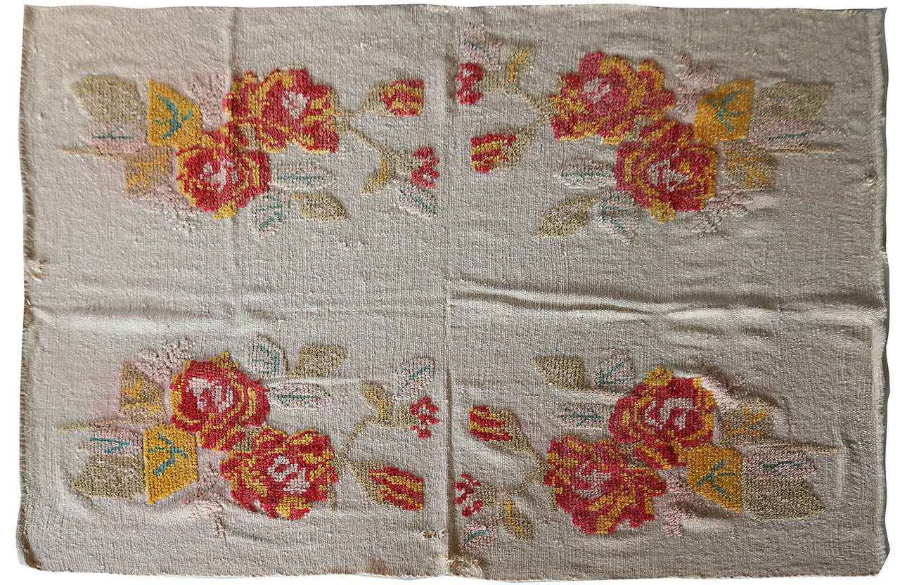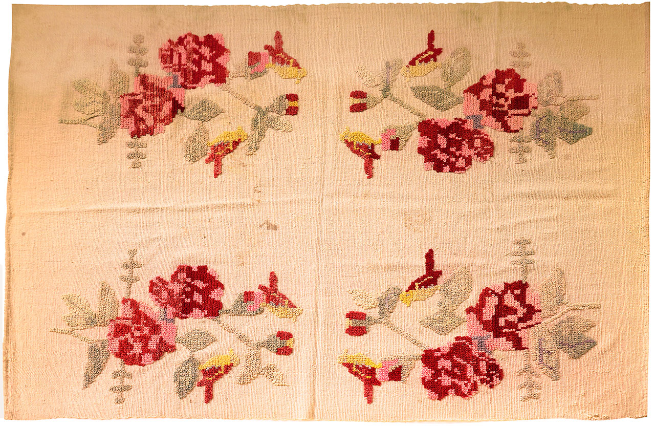 Técnica: Urdimbre y trama, una hebra / Pelo doble / Diseño floral (claveles) Cosida en la terminación