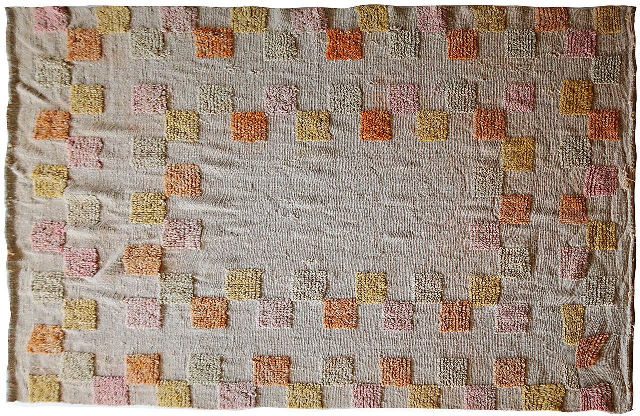 Técnica: Urdimbre y trama, una hebra / Pelo doble / Diseño geométrico / Cosida en la terminación